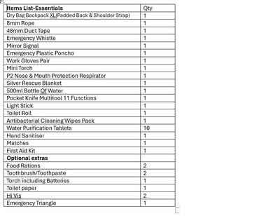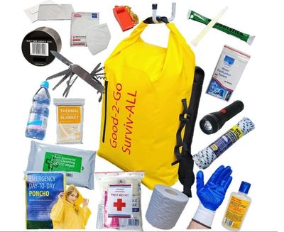 Good-2-Go Civil Defence Kit – Essential A compact, ready-to-use emergency kit designed to provide the core essentials for civil defence preparedness. Packed in a bright yellow dry-bag-style backpack with padded shoulder straps for comfort and visibility, it’s easy to carry and built to handle demanding conditions. Ideal for home, workplace, or vehicle use, this kit helps ensure you’re equipped with key survival and safety items when emergencies occur. Durable, portable, and ready to go — a must-have for personal emergency readiness.
