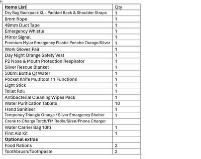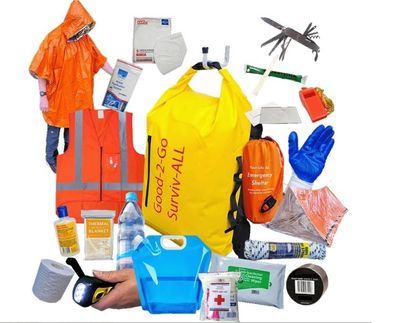 Good-2-Go Civil Defence Kit – Premium A comprehensive, high-capacity emergency kit designed to support a higher level of preparedness for civil defence situations. Packed in a bright yellow dry-bag-style backpack with padded shoulder straps for comfort and visibility, it’s built to handle demanding conditions while keeping key survival and response gear organised and protected. Ideal for homes, workplaces, or teams needing extended coverage and durability in an emergency. Robust, practical, and ready when you need it most.